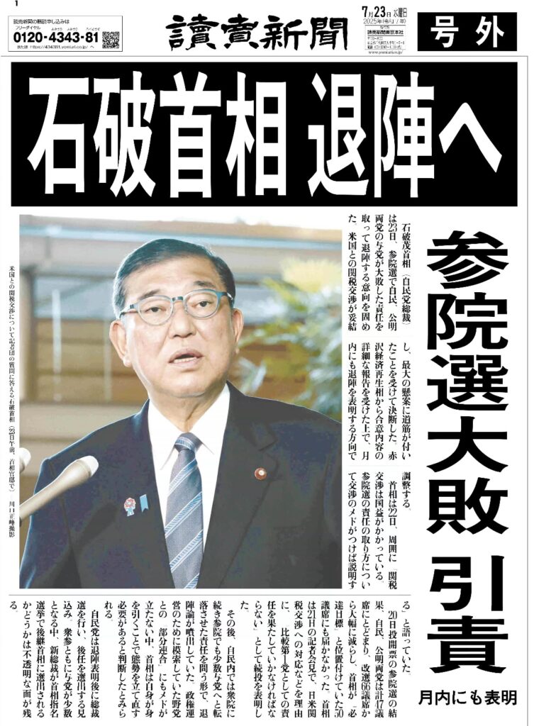所謂「石破おろし」はこの夏の参議院選が自民の敗北に終わってすぐに、読売と毎日が先陣を切って始まった。読売などは「号外」まで出した。結果として9月に退陣すると石破氏は発表したことはご存じのとおりである。終戦記念日の発言、ミズリー号上での無条件降伏式、そして現在の国連総会での演説まで、自民党と大手のマスコミは、完全に総理の発言を抑えきった。見事な言論統制である。今にして思えば、読売の号外は自民党内部からの圧力ではなかったと疑いたくなる。